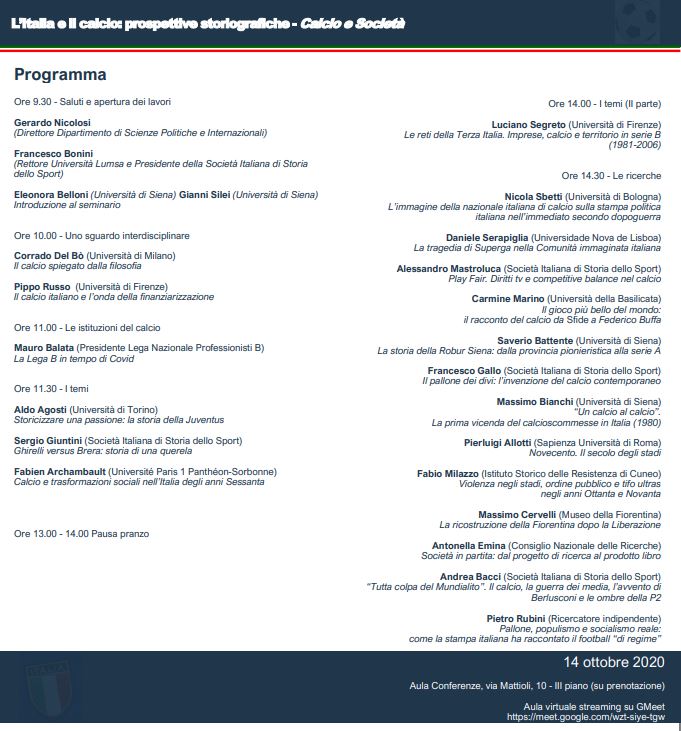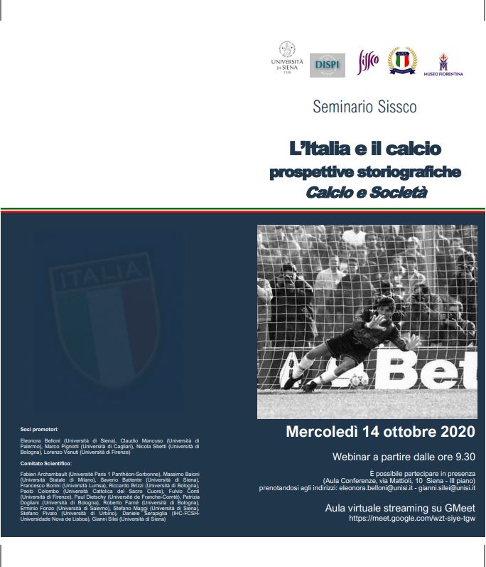Il 14 ottobre 2020 sarò presente al Seminario Sissco “L’Italia e il calcio: prospettive storiografiche. Calcio e Società”. Il titolo del mio intervento è: “Violenza negli stadi, ordine pubblico e tifo ultras negli anni Ottanta e Novanta“
